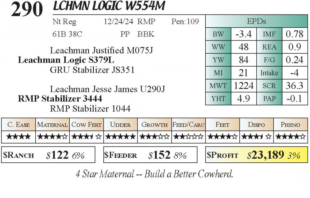 LCHMN Logic W554M (#290) Grass Time Private Treaty Online Bull Sale