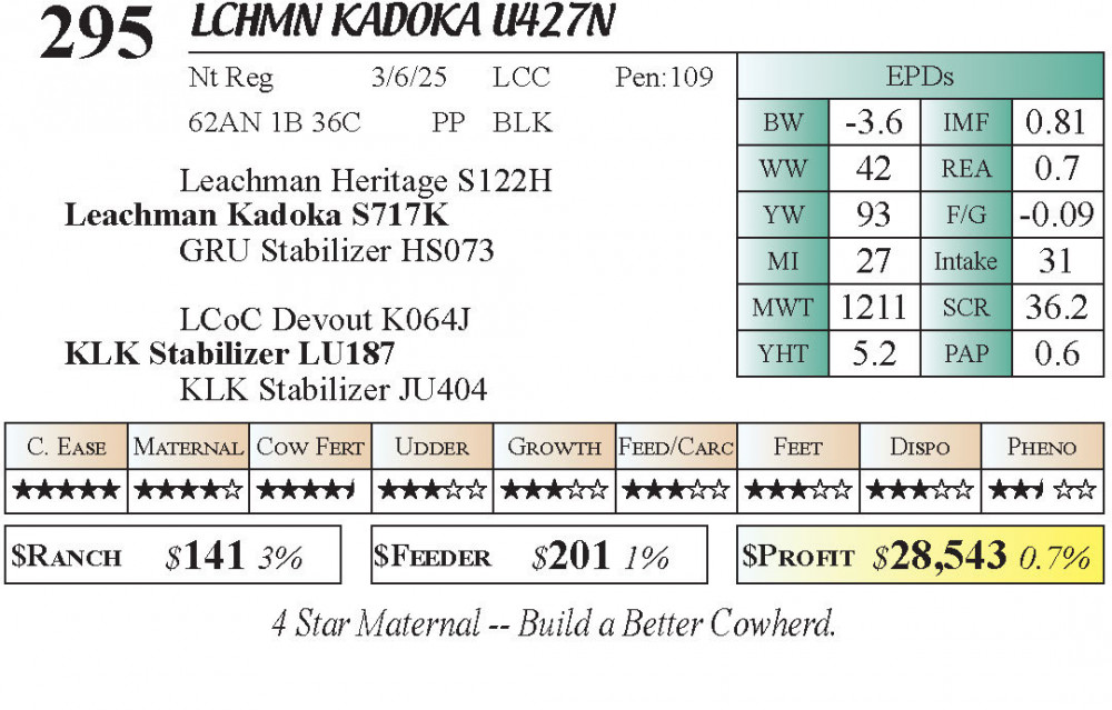 LCHMN Kadoka U427N (#295) Grass Time Private Treaty Online Bull Sale